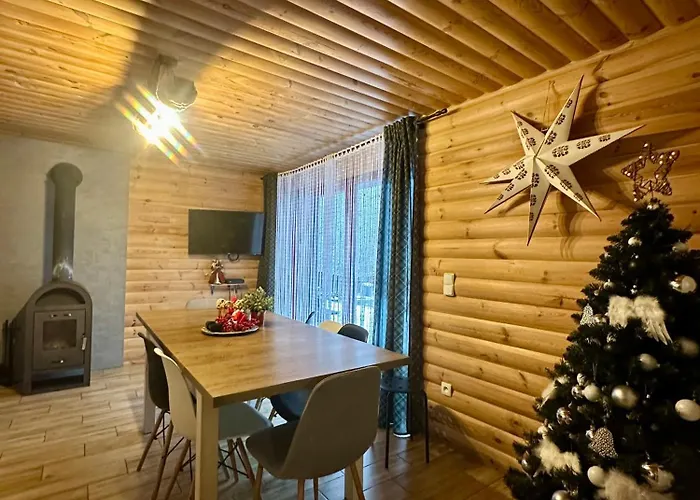 Offering a Jacuzzi and a sauna, the 2-bedroom Istebna Pelna Chata is located approximately 7 km from Cienkow Ski Lift. The property includes free private parking and a terrace with views of the mountain.